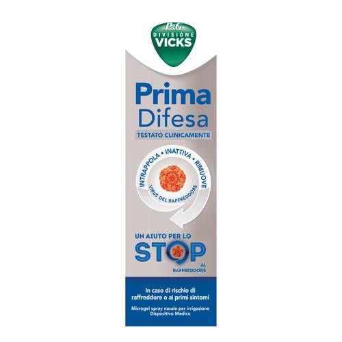 VICKS Prima DifesaDescrizione Microgel spray nasale per irrigazione. Dispositivo Medico. Prima Difesa agisce direttamente nella parte posteriore del naso, dove il virus del raffreddore si insinua e si sviluppa. Intrappola, inattiva e aiuta il tuo corpo a rimuovere naturalmente il virus del raffreddore, prima che si sviluppi un vero e proprio raffreddore. Testato clinicamente. Modalità d'uso Applicare 2-3 volte per narice immediatamente nelle prime 24-36 ore dopo i primi sintomi del raffreddore, come pizzicore alla gola o starnuti. Inclinare l'applicatore verso l'esterno, lateralmente verso l'orecchio ed evitare di inalare profondamen...