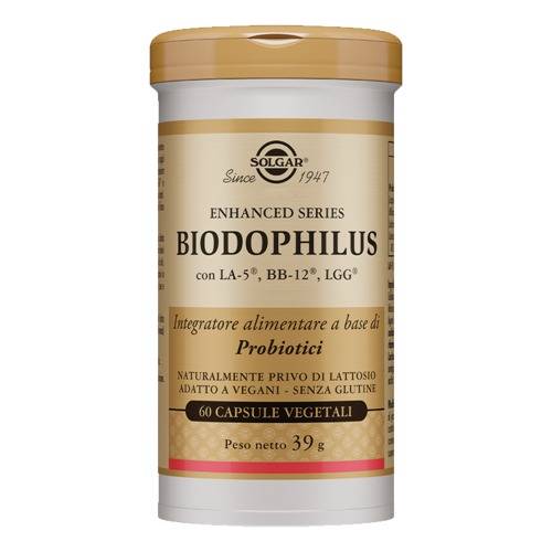 BIODOPHILUSDescrizione Integratore alimentare a base di probiotici. Fornisce una miscela dei ceppi probiotici Lactobacillus acidophilus LA-5, Bifidobacterium lactis BB-12 e Lacticaseibacillus rhamnosus LGG, Lacticaseibacillus paracasei ATCC 55544, utili a favorire l'equilibrio della flora intestinale. Formula stabile a temperatura ambiente, naturalmente priva di lattosio e lattoderivati. Adatto ai vegani. Ingredienti Maltodestrina da mais; agente di carica: cellulosa microcristallina; agente di rivestimento: idrossi-propil- metilcellulosa; addensante: alginato di sodio; agente antiagglomerante: biossido di silicio; Lactobacil...